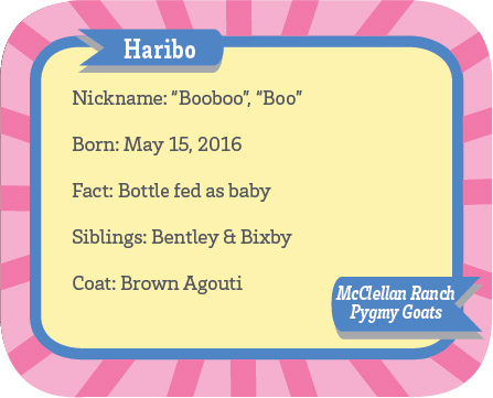 I made trading cards of the pygmy goats to use at the Santa Clara County Fair.